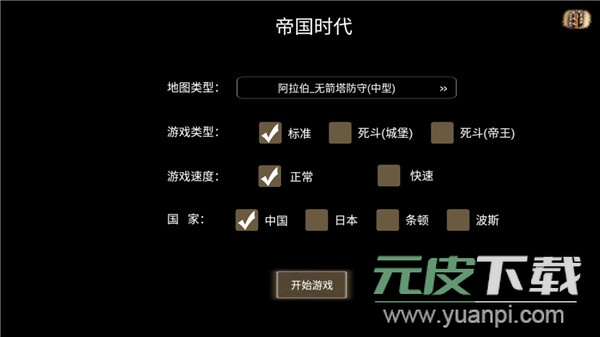2、可以自由选择地图类型、游戏模式、游戏速度以及所属国家阵营;