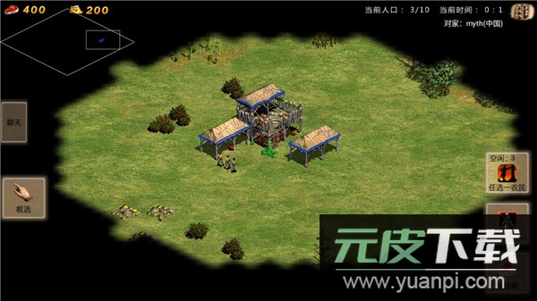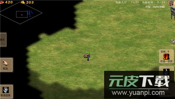 3、进入对局后,可以单独点击选择农民,也可以使用框选功能,一次性选取区域内的多个农民单位;