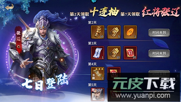 3. 连续登录七天,可直接获得红色品质武将张辽!