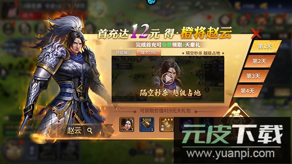 4. 首次充值立即领取强力武将赵云及连续四日豪华礼包!