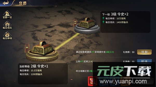 1. 玩家扮演一方主公,通过完成各类官爵任务来提升爵位等级,从而增加每日俸禄收入。