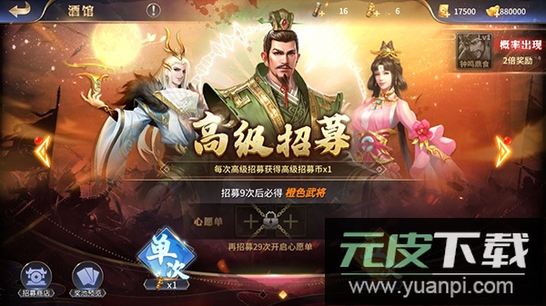 3. 前往酒馆进行武将招募,累计一定招募次数后必定获得稀有武将。