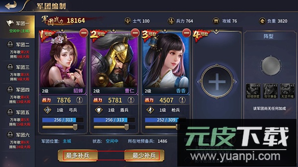 4. 集结足够将领后,即可编排专属军团阵容,搭配上阵英雄并补充兵力,为征战四方做好充分准备。