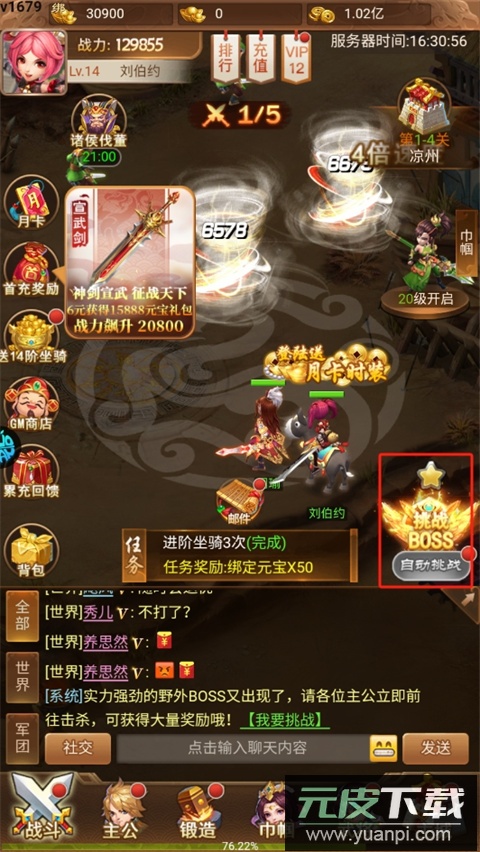 3、角色会自动展开攻击,战胜BOSS后可领取丰厚奖励;