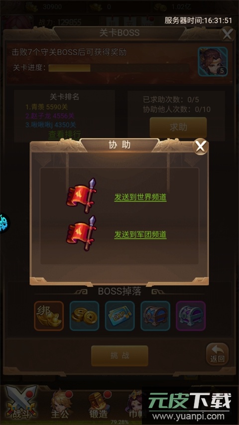 5、通过世界频道或军团频道发送求助信息,集结力量再次挑战。