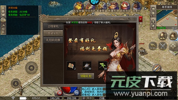 1、创建角色后即可获得登录礼包与新手上线奖励;