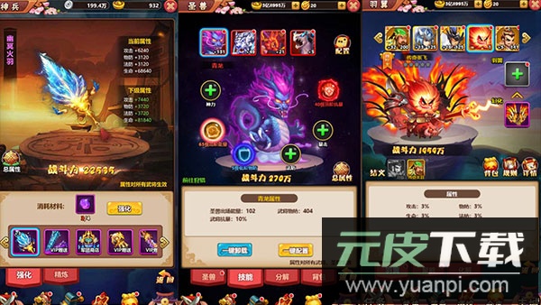 1、除武将外,游戏中的神兵、圣兽、羽翼等也是重要的养成方向,不仅外观华丽,更能大幅提升主角战力;
