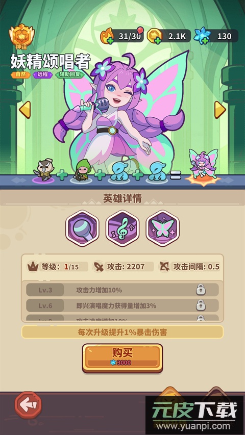 妖精:辅助型英雄,能为队伍提供有效支援,可尝试配合核心输出使用。
