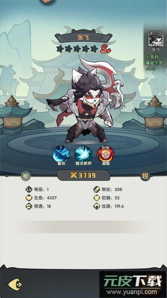 2、集齐蜀国五虎将能激活专属特效,全员攻击力急速上升,让对手难以招架;