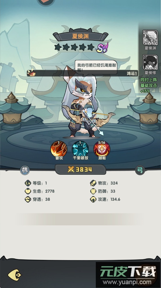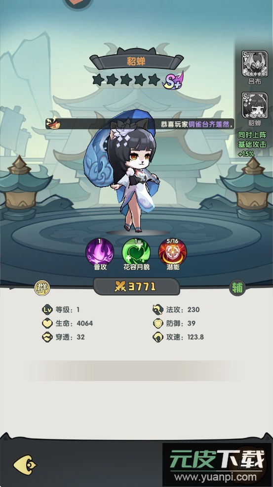 3、吕布喵拥有“零氪之神”称号,前期甚至能以一敌六,专注提升血量即可越战越强;