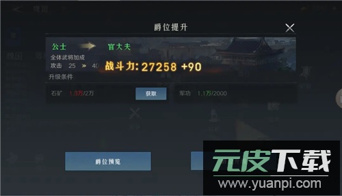 爵位提升后能够增加全体武将的攻击属性,从而有效提升整体战力。