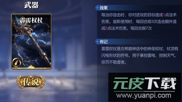 霹雳权杖效果:每当触发连击时,对攻击目标造成1点法术伤害;宙斯装备后,每回合前3次连击的该伤害提升至2点。每回合最多触发7次。这件武器能增强连击时的输出,装备后应尽量打出多段连击以最大化伤害。防具推荐搭配秩序之盾,结合【神圣裁决】的封印效果,容易积累优势并逐步扩大胜势。