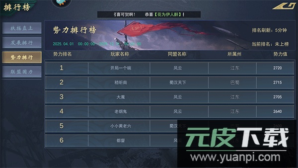 6、查看排行榜了解全服玩家的势力、联盟及发展情况,便于规划策略;