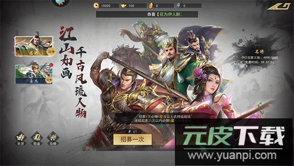 5、完成引导后点击招募,新手可享五次免费招募机会;