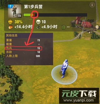 部队在交战中会产生伤亡,受伤单位即为伤兵。若伤兵未得到及时救治,会随时间推移逐渐减员。