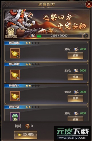 每日完成一定贡献值任务后,可领取并完成对应巡查任务,获得元宝及其他材料;任务奖励每次刷新后都会变化,是免费赚取元宝的好方法。