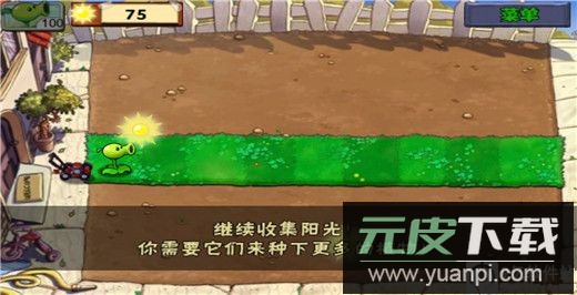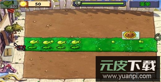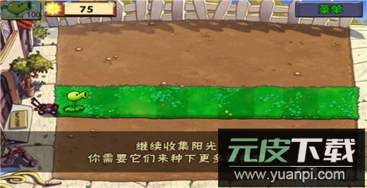 4、在草地格子上种植豌豆射手,这是初期可靠的攻击植物;