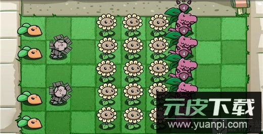 该阵容的阳光产出是显著弱点且难以优化,因此携带萝卜用于生产阳光;其副作用在1至13波无需过度担忧,只需注意避免大爷、二爷或蓝橄榄僵尸吞噬萝卜后侵入房屋即可。