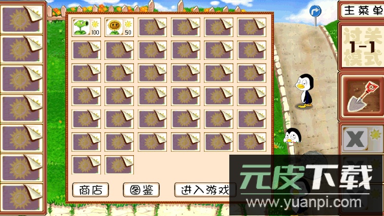1、通过合理种植植物抵御企鹅队伍的推进;