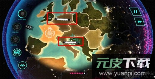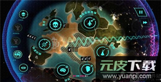 4、放大画面并点击其他势力区域,可执行攻击、研究、扩张拆除或建造导弹等指令;