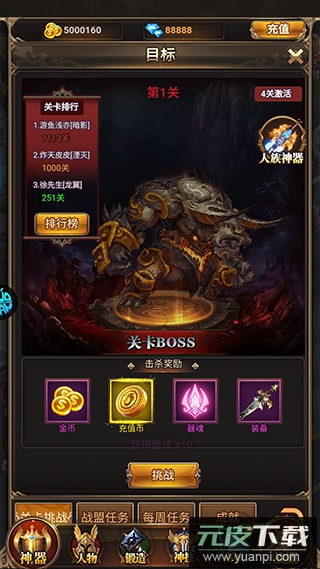 1、战胜强力首领可获得高阶装备,从而显著提升角色战力。
