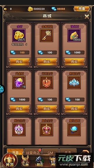 4、消耗钻石等资源于商城购置武器与装备,进一步打造更强角色。