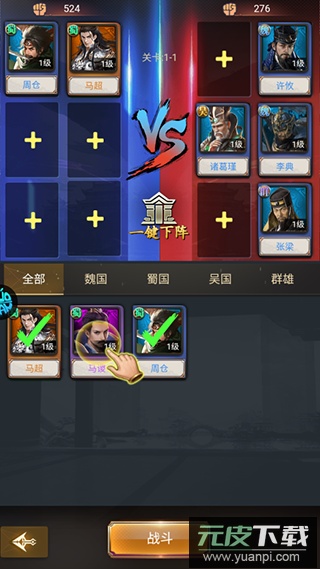 5、点击角色头像布阵,根据敌方特点调整出战阵容;