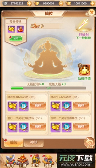 3、神器解锁:仙位提升后会开放对应神器,神器在战斗中有概率自动施放技能。