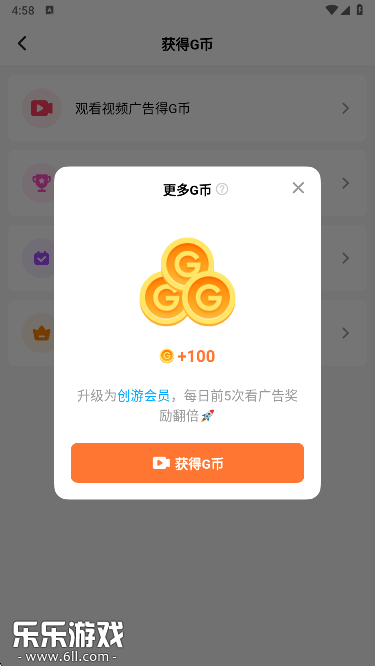 4、每日观看广告可以领取100G币。