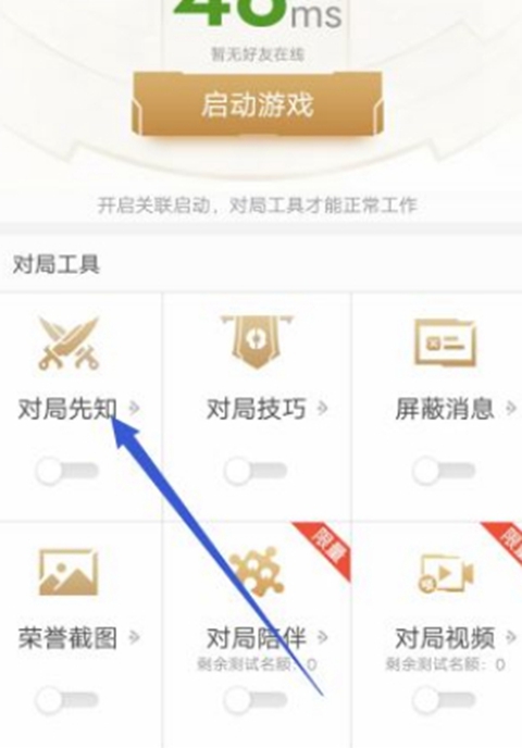 3、在游戏工具页面中找到对局先知功能,先不急于开启,点击进入详情设置。
