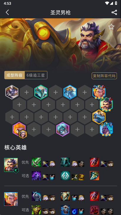 3、点击任意阵容可查看详情,包括棋子站位推荐、装备选择方案等具体信息。