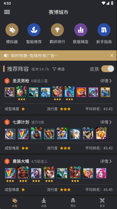 2、紧跟英雄联盟自走棋模式的最新动态,提供全面详细的数据分析与解读;