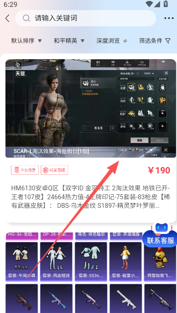 4、系统会按默认排序为你推荐可能符合需求的游戏账号。