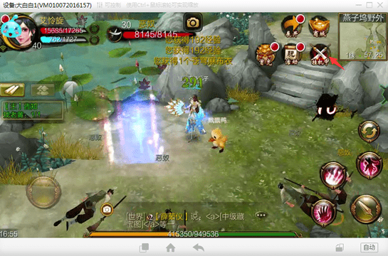 4、进入游戏界面,选定任务或挂机地点,点击挂机按钮即可开启自动托管。