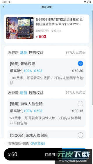 4、根据需要选择包赔服务,然后确定支付全款或定金,最后提交订单完成付款。