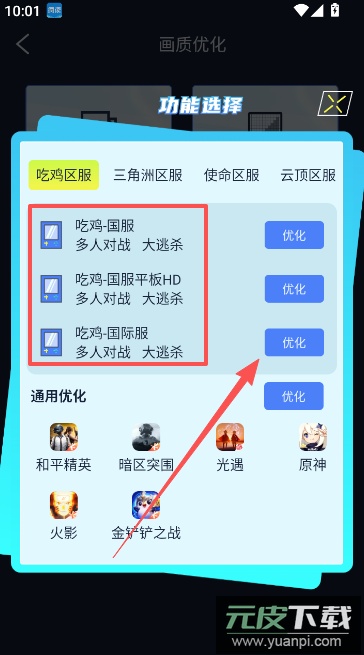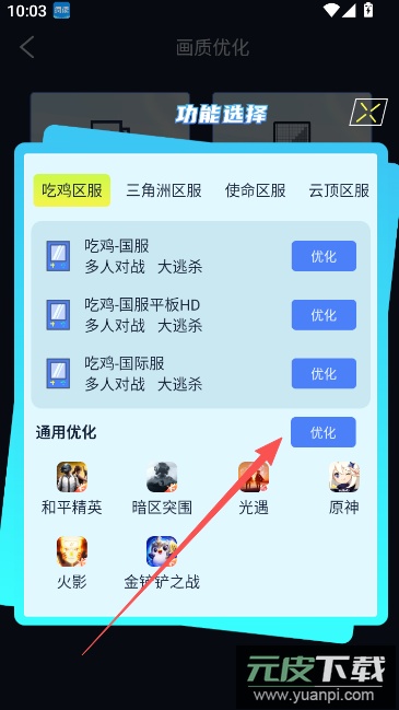 1、进入画质优化版块,选择需要优化的游戏项目。