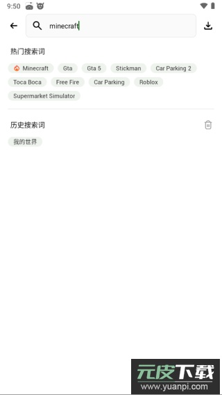 首先在应用顶部的搜索框中输入你想寻找的游戏或应用名称;例如,想要查找“我的世界Minecraft”,直接键入该名称即可。