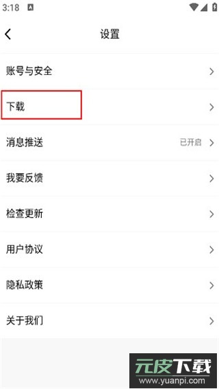 2、进入设置界面后,在选项列表中选择“下载”功能。