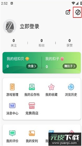 1、在本站下载应用后打开,进入主界面右下角点击“我的”进入个人中心,随后点击页面右上角的“设置”图标。
