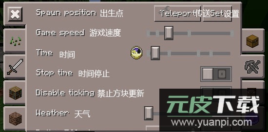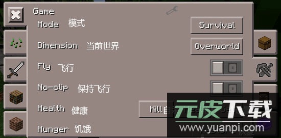 设置菜单内可调整游戏模式、启用下界传送、控制飞行开关等;