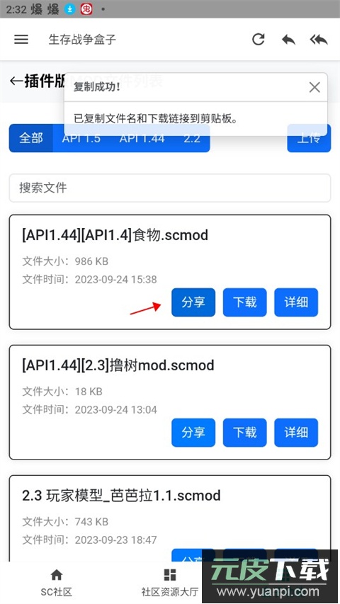4、下载完成后,使用分享功能复制该模组的下载链接。