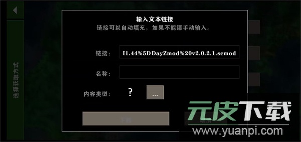 6、粘贴刚才复制的链接,清理多余字符,选择模组为内容类型后开始下载。