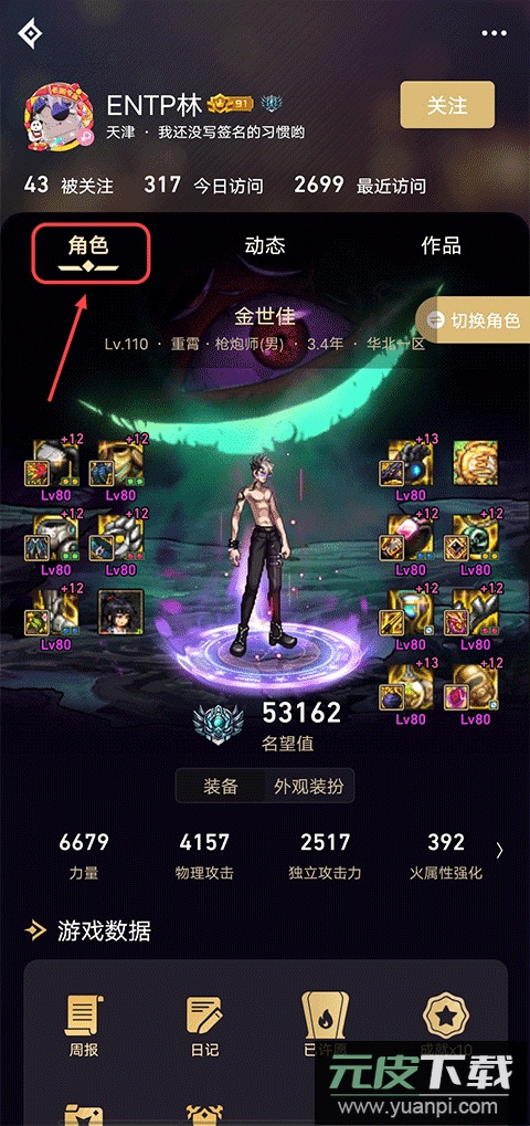 其次,在主页中找到角色选项并点击,就能查看该玩家所有的角色详细信息。
