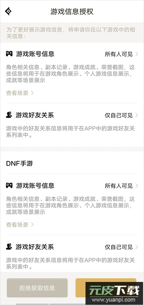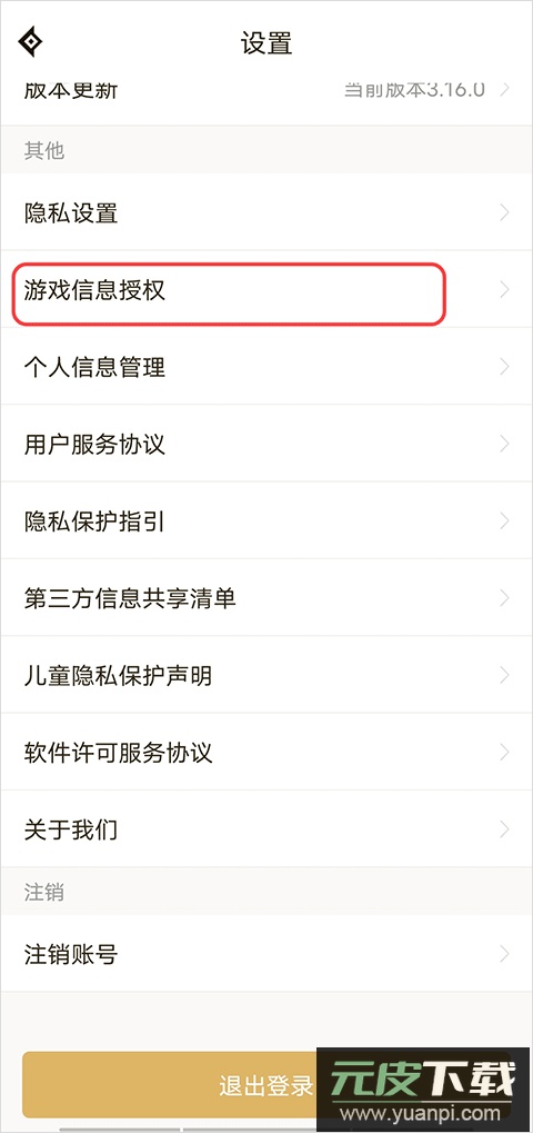 3. 滑动到设置底部,点击游戏信息授权。
