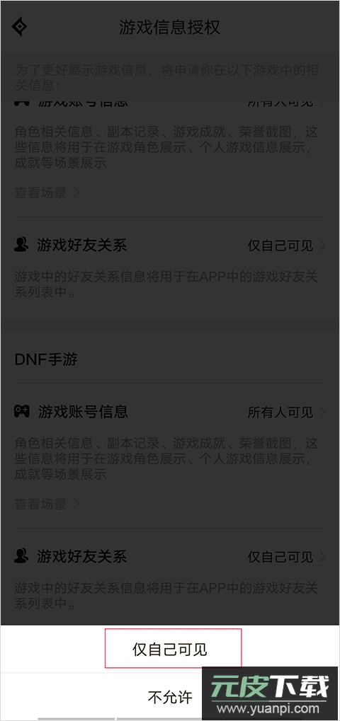 5. 最后在弹出的选项里选择仅自己可见,即可成功隐藏角色信息。