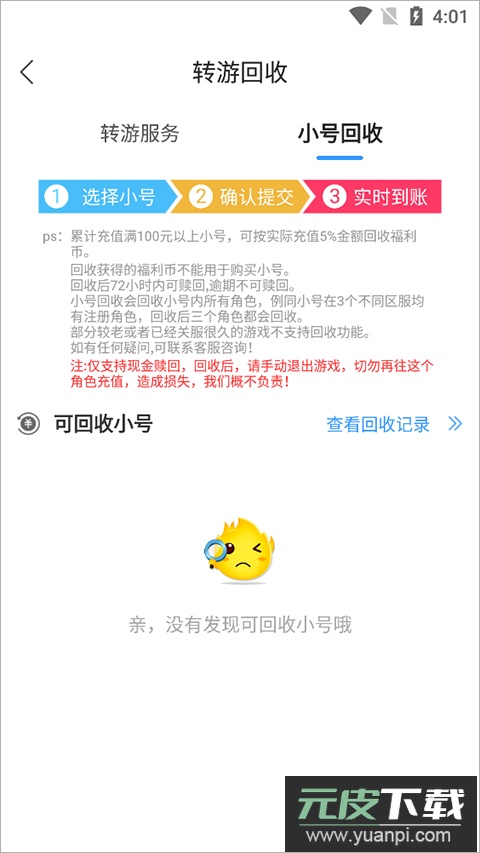 3、操作简便:选择要回收的小号,提交申请,款项实时到账。