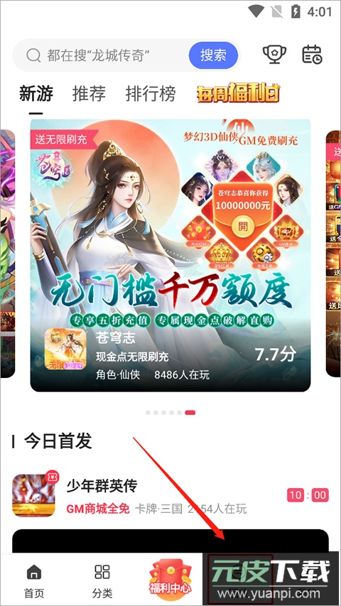 3、游戏种类丰富:涵盖传奇、挂机、仙侠、卡牌、奇迹等多种游戏类型;