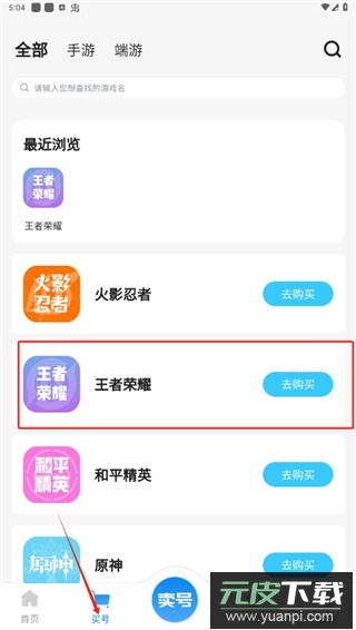 1、在软件的首页中,点击买号服务再选择你需要的账号游戏