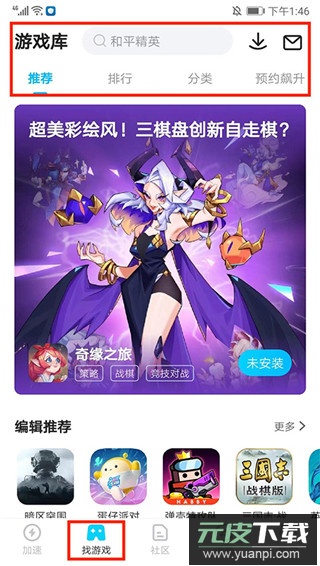 5、在【找游戏】界面,用户在这里可以了解biubiu加速器所支持加速的游戏类型,分为【推荐】、【排行】、【分类】和【预约飙升】,也可以在上方【搜索框】进行搜索查询,