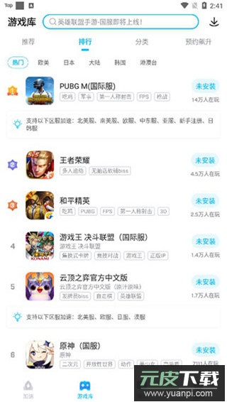 在游戏库页面,可以看到各类热门手游,其中包含许多尚未在国内正式上线的海外版本游戏;